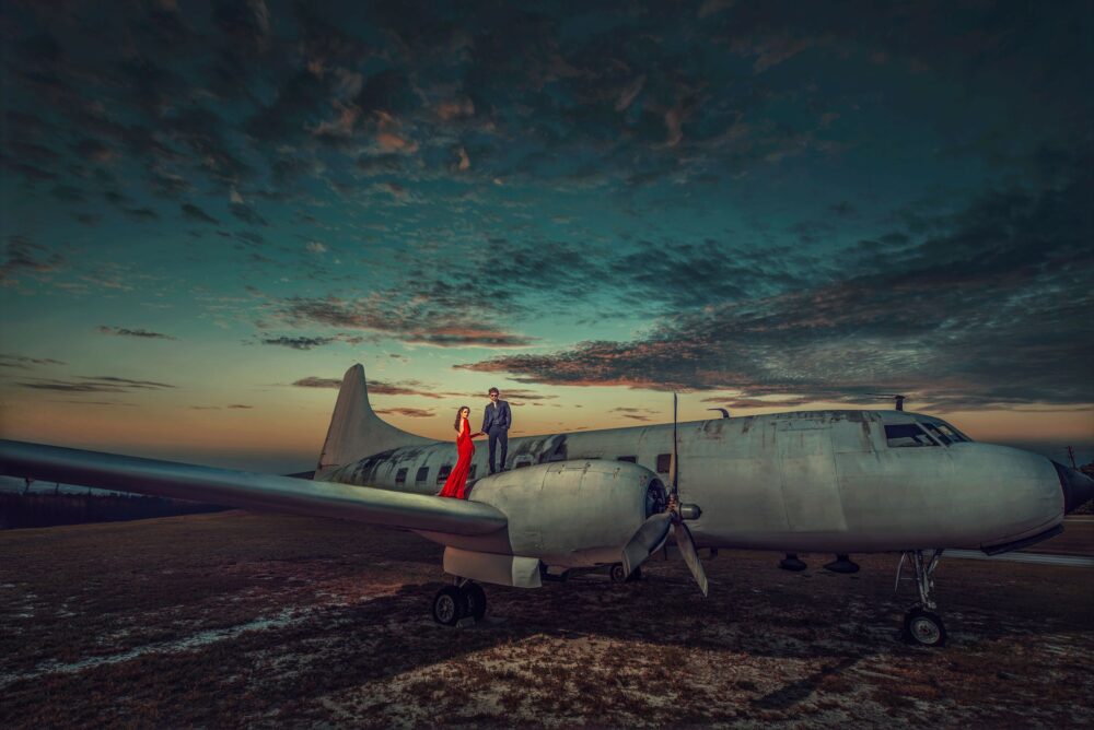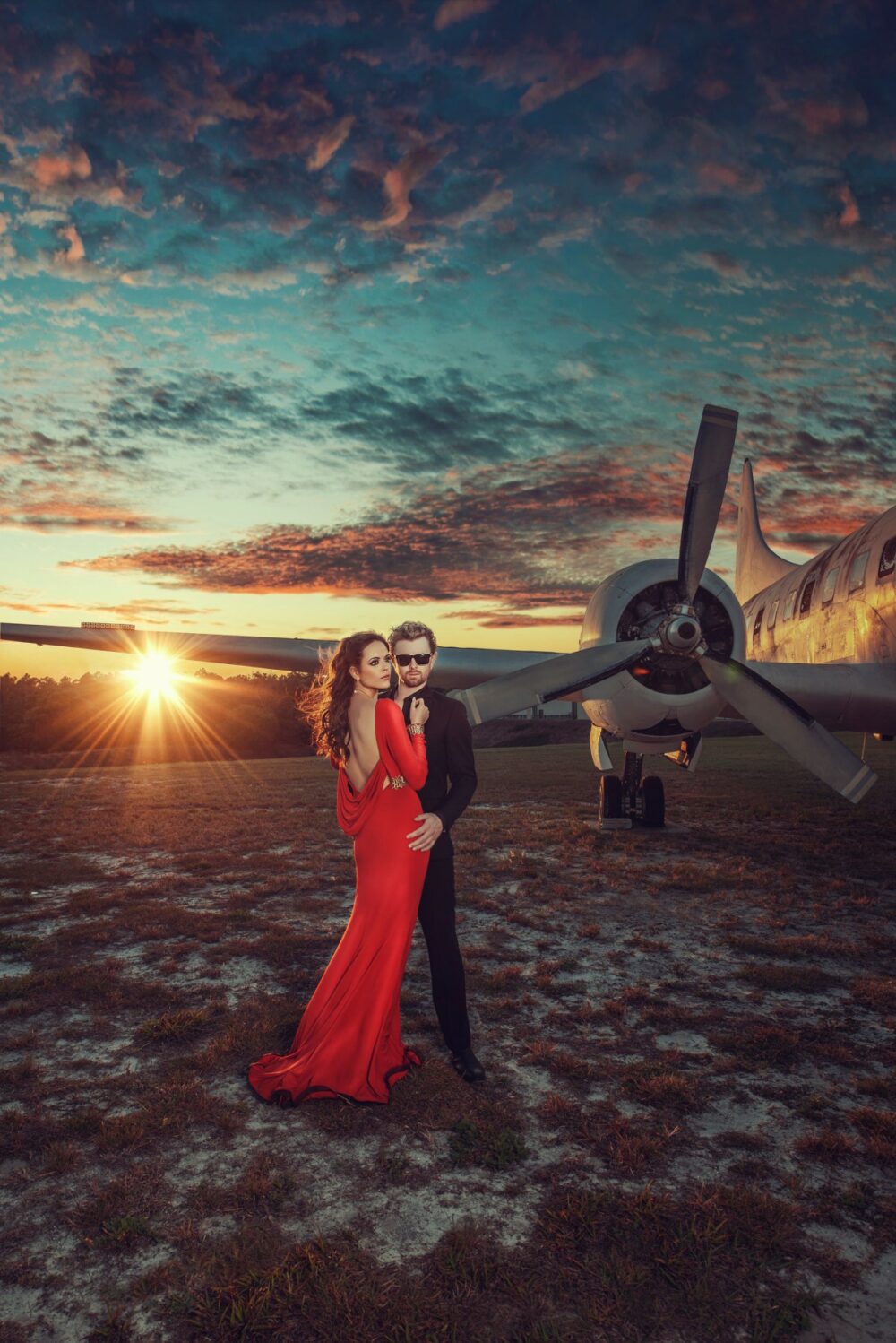 I had my assistant standing on the wing of the airplane, directing my light towards the couple. I used the ELB 400 with one Quadra HS flash with a reflector mounted on a light stand. It was getting dark very quickly and I had to do that part of the session within a couple of minutes to achieve great tones.