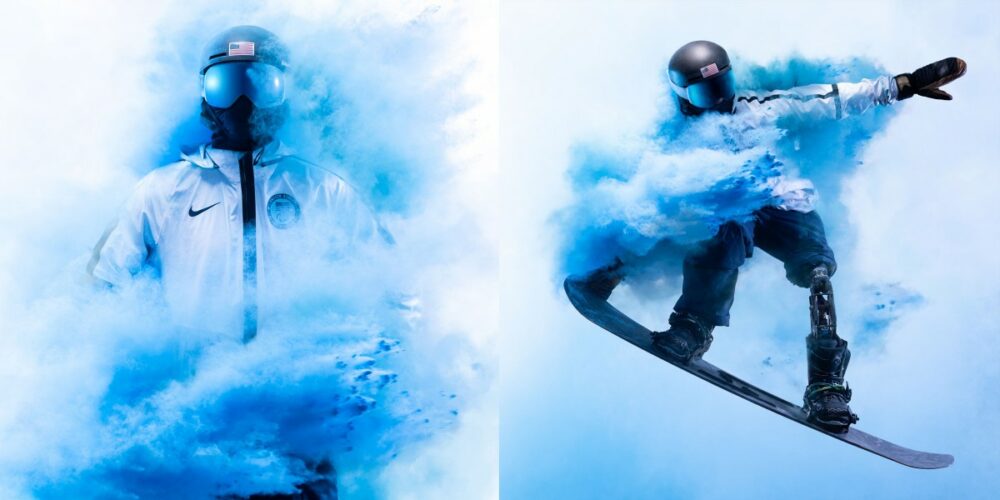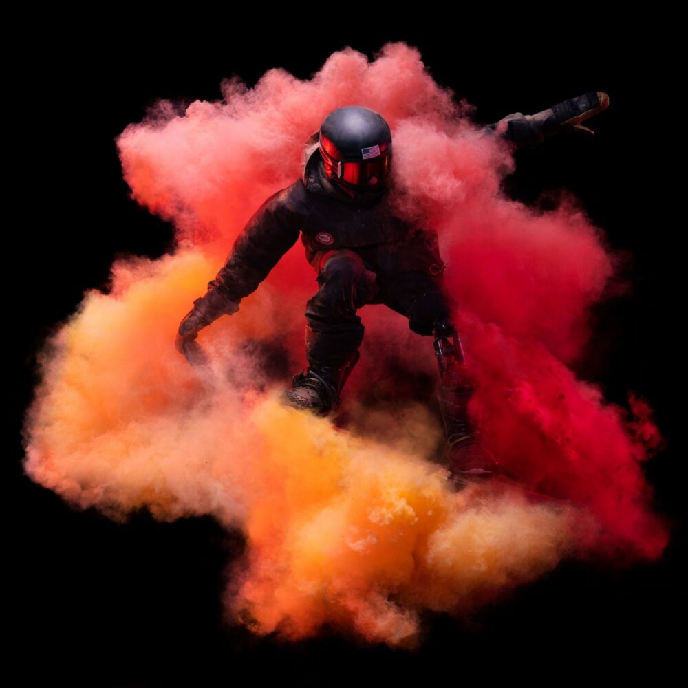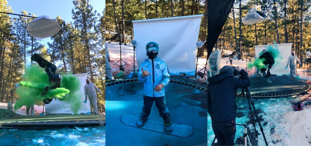 We didn’t want this shoot to be a guy standing with a gold medal around his neck, that really isn’t the point of Noah’s story. We wanted it to be an ending that showed the beauty of the journey, a crescendo in a symphony of life. Naturally that means you throw a ton of really messy powder at your camera and use a bunch of lights, while he does backflips on a trampoline!