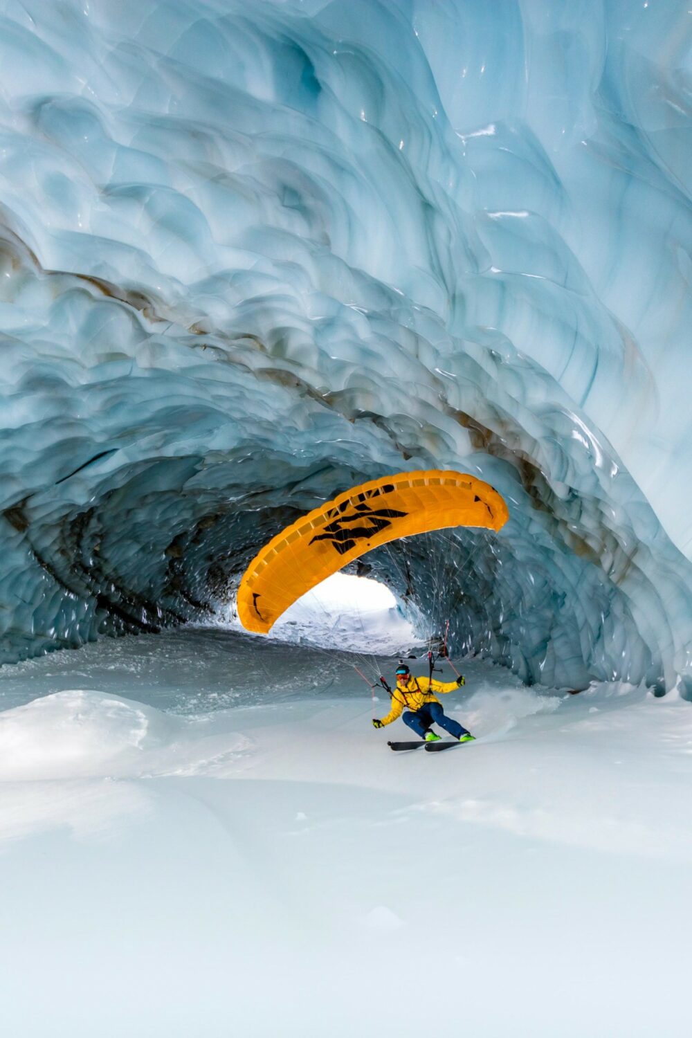 I recently discovered a massive ice tunnel, 3000 meters above sea level on a Split board Tour. I’m not sure, but I could probably fly with my Speedrider through.