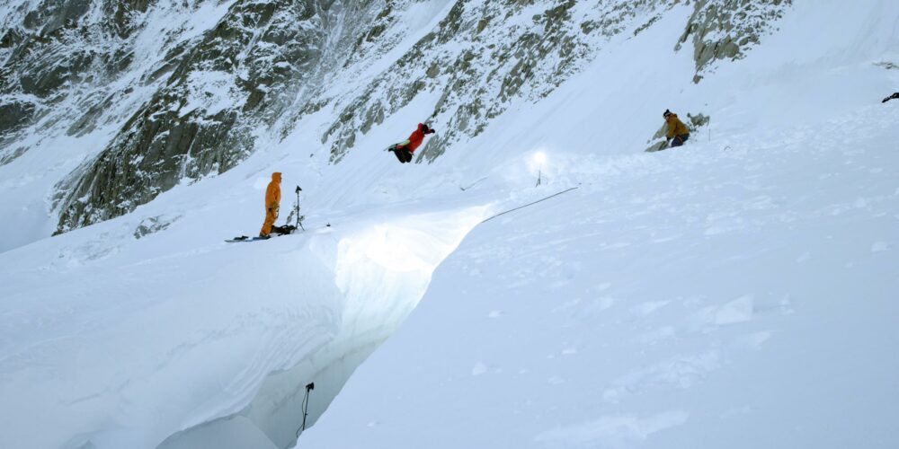 Eventually we did find a perfect crevasse and, despite everything, we had very firm snow cover that we had to break down further to enable the skiers to make multiple jumps without putting themselves in danger.