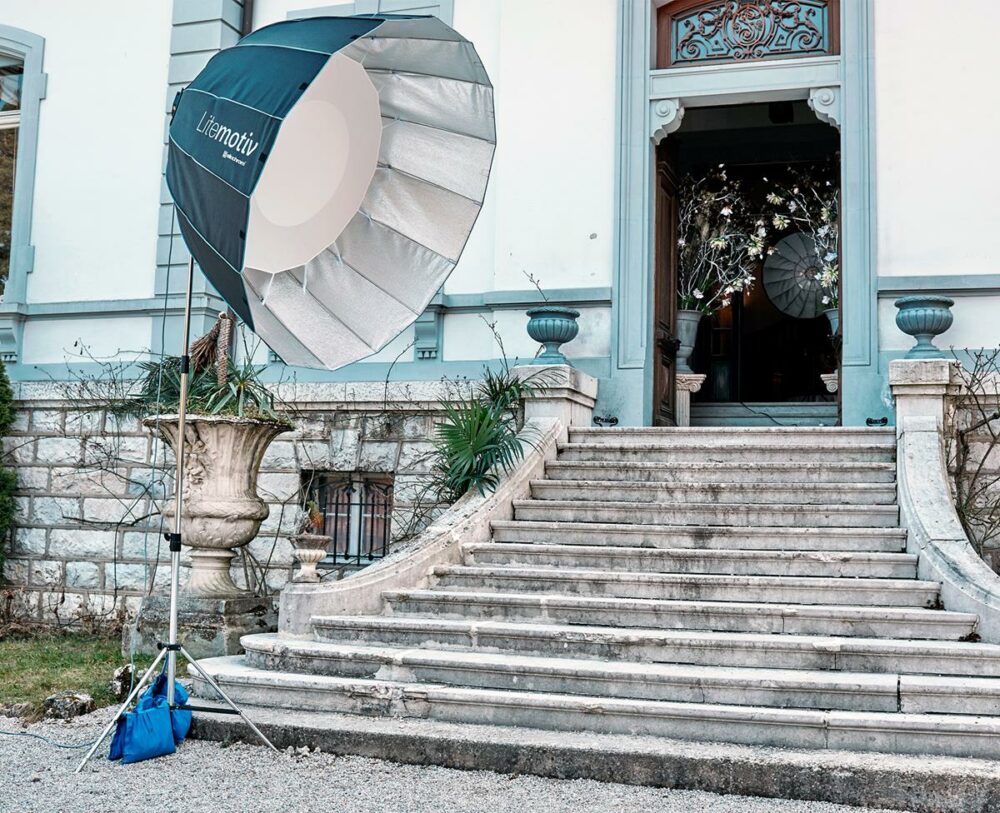 For this shoot, we needed to light up a girl who was walking down a staircase, for a fairly wide-angled shot. That meant that we needed a lot of light and my default choice could have been the Rotalux Octa 175 cm. However, the problem is that it lights a wide area: it’s soft, but wide, too wide.