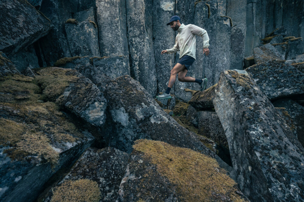 This shoot started with a location. I had been here years before but had forgotten about it. Upon seeing the vertical lines of the rock, I was inspired and the idea of what I wanted to shoot was apparent, a runner, wearing a bright outfit, set amongst the neutral colours of the rock, because these boulders aren’t a typical trail, or something you would normally run through. It’s raw, uneven, and demanding. Every step takes attention, and that is the concept I was after. Movement that is honest. Poses that happen naturally while moving through the rocks safely and quickly.
