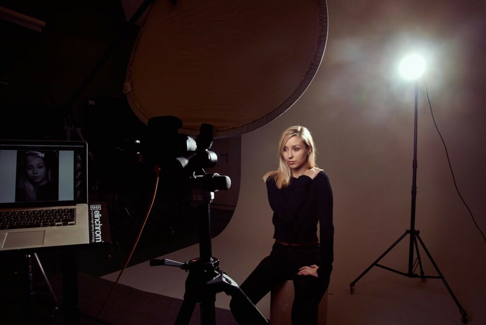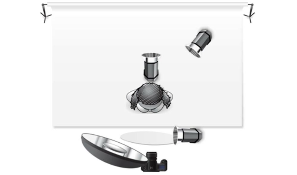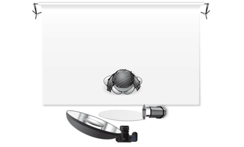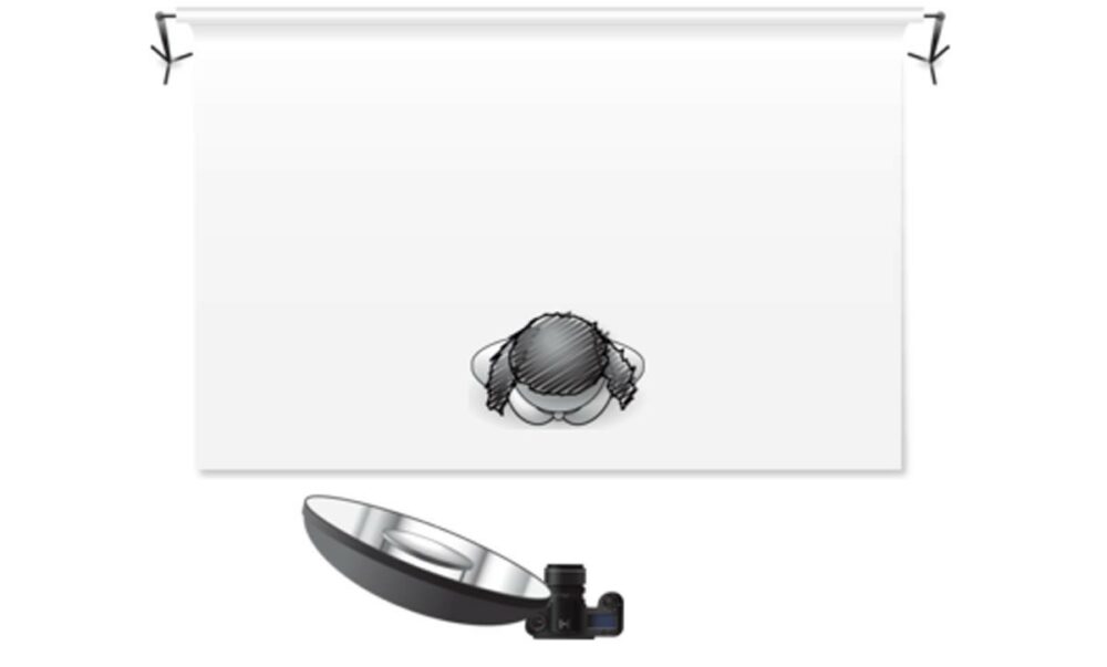 With a grid on the beauty dish, less light will spill over the background, and a strong vignetting will appear.