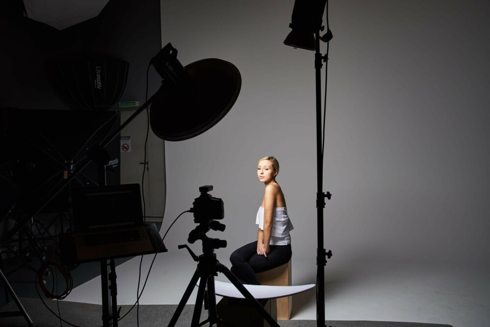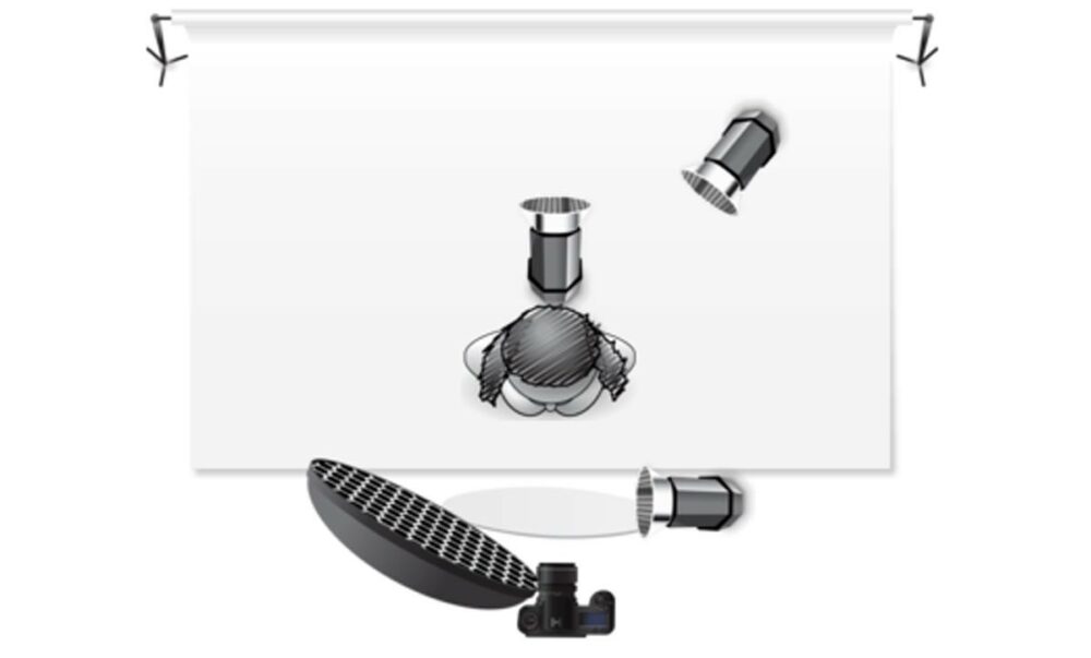 So, like in our portrait setup, let’s place a hair light. The grid you chose here will depend on a few different elements. First is flaring and second is if the model has to move into different poses or not. I opted for a 20° grid, to give my model room to move a tiny bit while still avoiding flare.