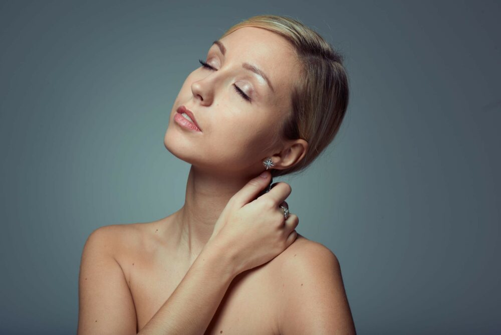 The model’s eyes look flat, and the shadows could use a bit of fill light.