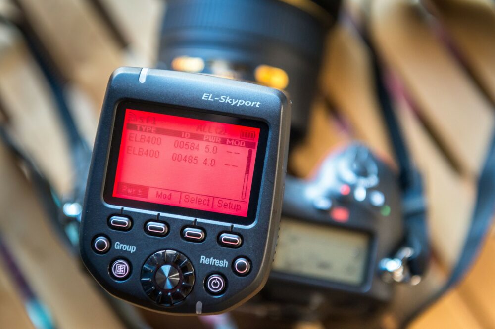 In “Speed” sync mode, the backlit screen of the Transmitter Pro lights up in red. On all EL-Skyport Transmitters and Receivers, this setting has to be enabled.
