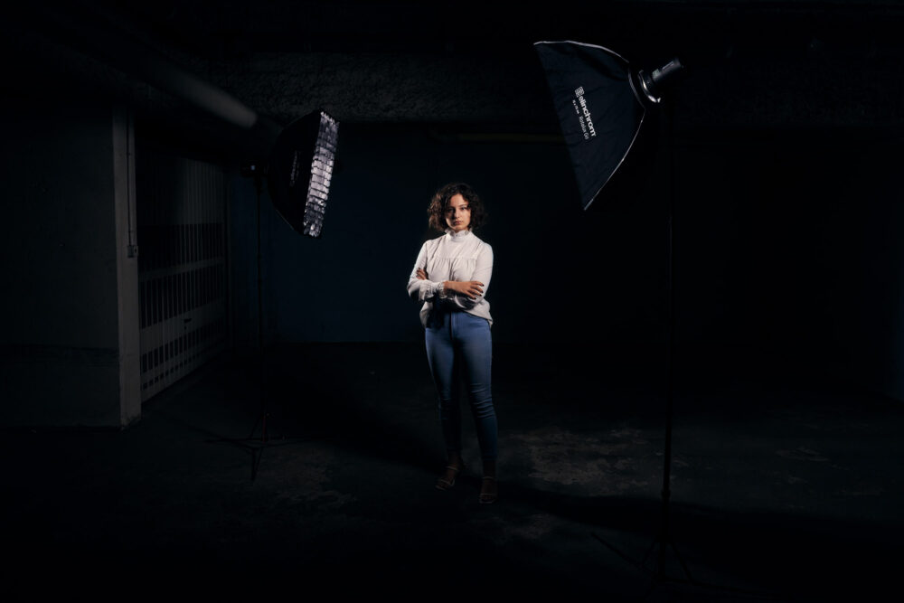 I had in mind three different looks using two Strip softboxes, and to do so, I still had many options to try out: