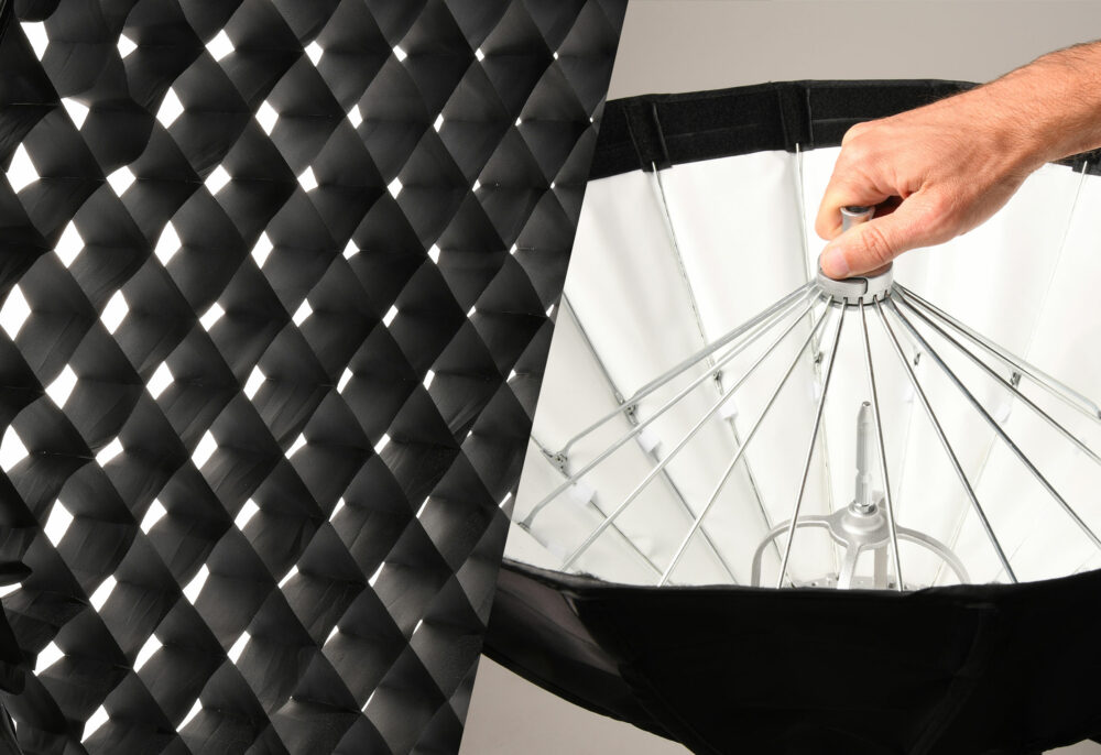 The Rotalux Go Strip comes with a grid, and two diffusion layers (inner and outer layers), all of which can be attached with a Velcro system.