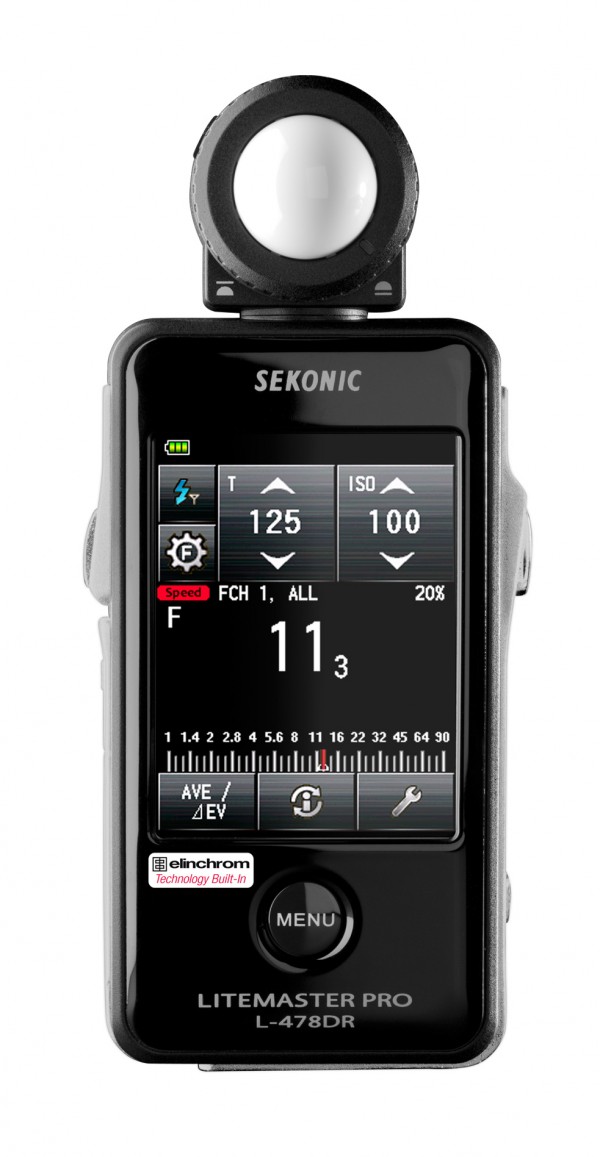 The LiteMaster Pro L-478DR-EL light meter of Sekonic offers wireless triggering and full power control of all EL-Skyport enabled Elinchrom flash units.