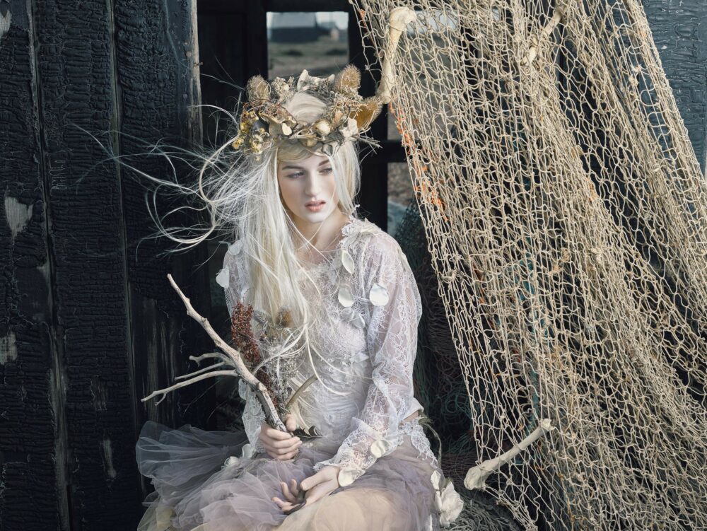 “We shot this on location at Dungeness, it was one of the windiest days I have experienced. It was absolutely freezing and at times the model had tears in her eyes.