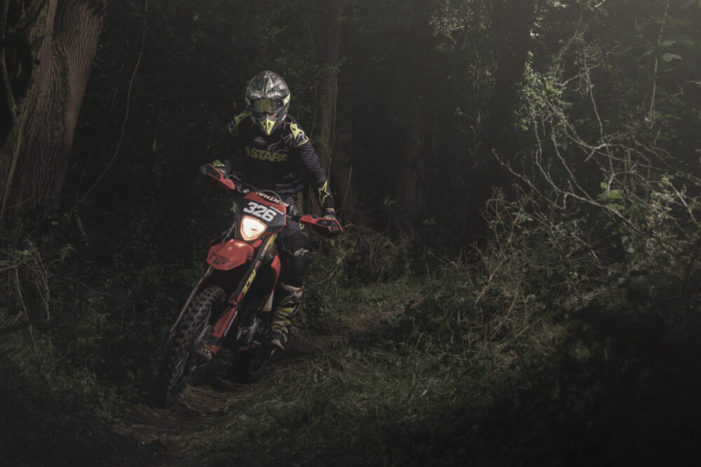 I used the ELB 1200 with a 40cm reflector to create a natural-looking pool of light, mimicking sunlight. The THREE, with a 26cm reflector, provided a second pool of light further back, ensuring both bikes were lit as they moved through the trees. I aimed for a dark, painterly, Rembrandt-style effect, deliberately showcasing the fact we used flash. The Elinchrom system delivered consistent colour and sync, and while two THREE units could have worked, the 1200W ELB added a wow factor that’s hard to beat, I find the 1200 is definitely the light to pull out when you want to impress a client on a shoot.